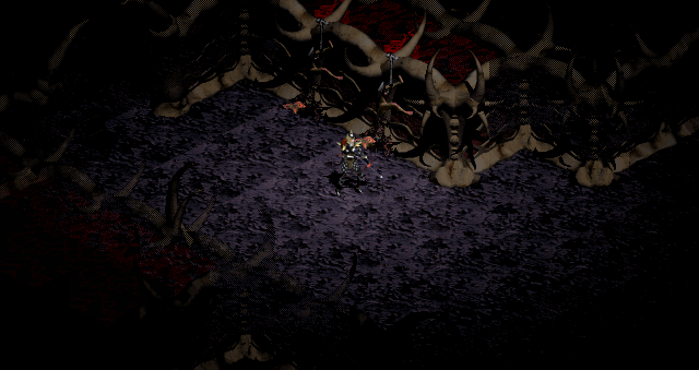 Il n'y a pas de sanctuaire bien défini sinon des Cauldrons, et parfois des Blood Fountains ou des Purifying Springs, voire des Murky Pools. N'espérez pas y trouver une bibliothèque, il n'y en a pas plus que dans les cavernes.