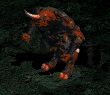 Très résistant au feu et immunisé contre la magie. A la capacité de charger, mais il semble que ce ne soit pas le cas de ses laquais. Entre 120 et 140 points de vie.