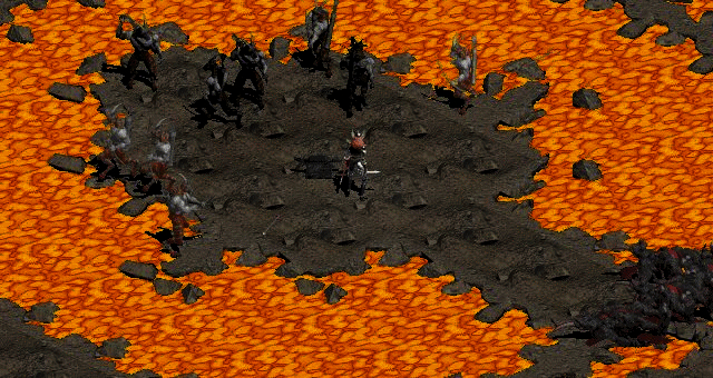 Là, un golem, même de niveau 15, ne suffira jamais à tout nettoyer, surtout à cause de Diablo, qui lance un sort dont l'effet ressemble à celui d'une toute petite bombe atomique qui tomberait sur la case où le sort tombe :